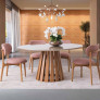 A Mesa Ducale une forma e equilíbrio em um design que abraça a beleza natural da madeira. Seu tampo redondo traz fluidez ao espaço, enquanto a base imponente garante presença sem perder a delicadeza. Para quem busca leveza, o tampo em vidro Off White cria um contraste sutil e sofisticado — o encontro perfeito entre aconchego e elegância.